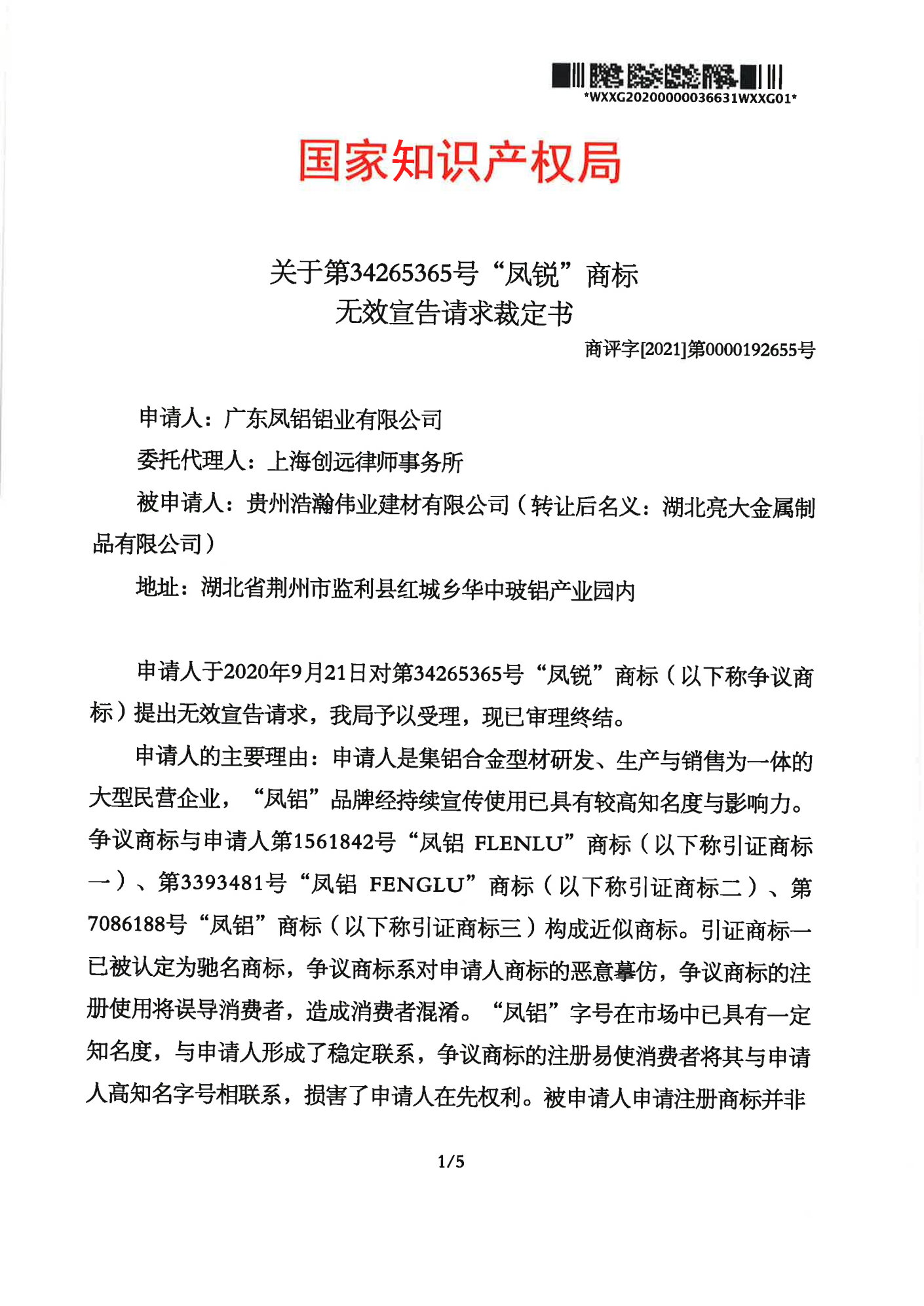 辉知队 | 国家知识产权局:“凤锐”商标无效