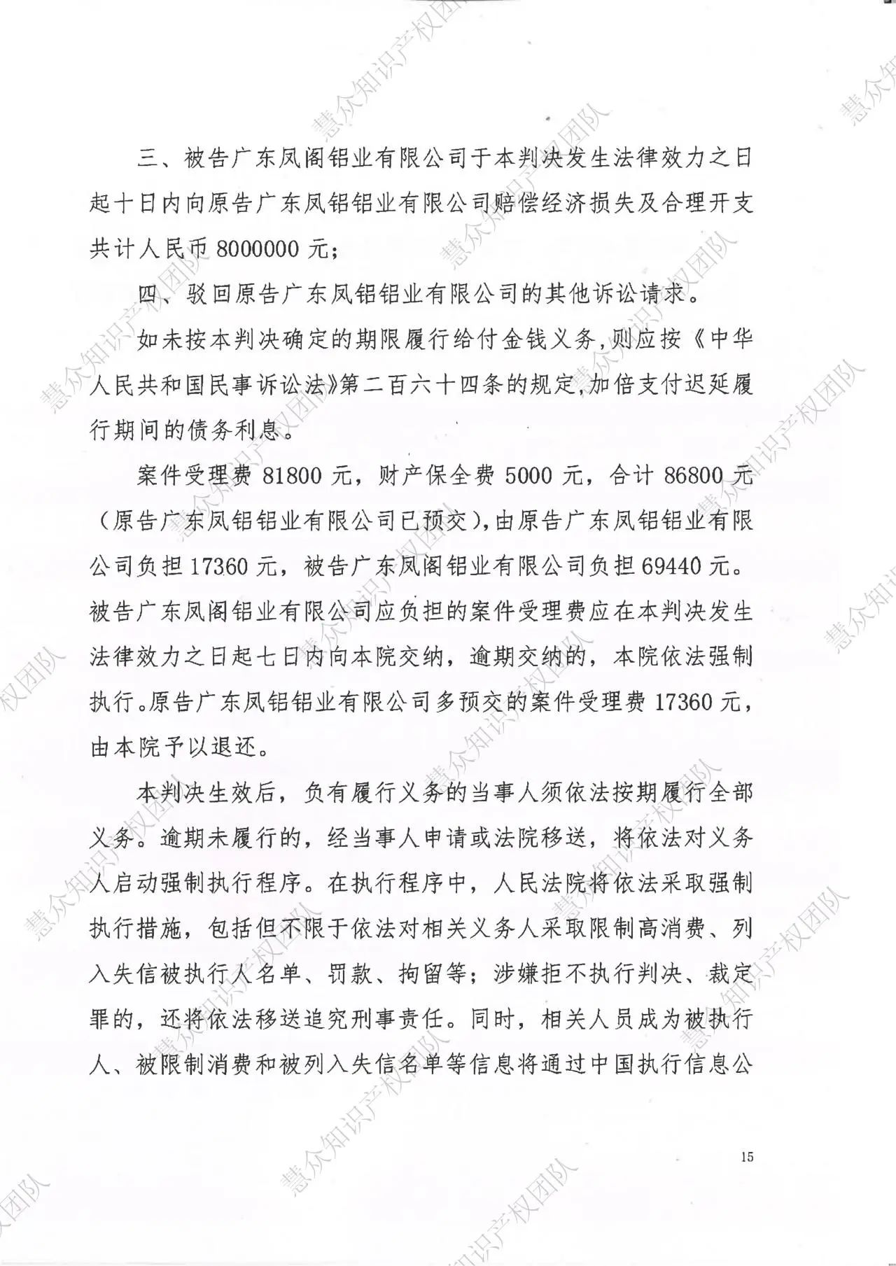 判赔800万!辉知队代理“凤铝”商标维权案胜诉